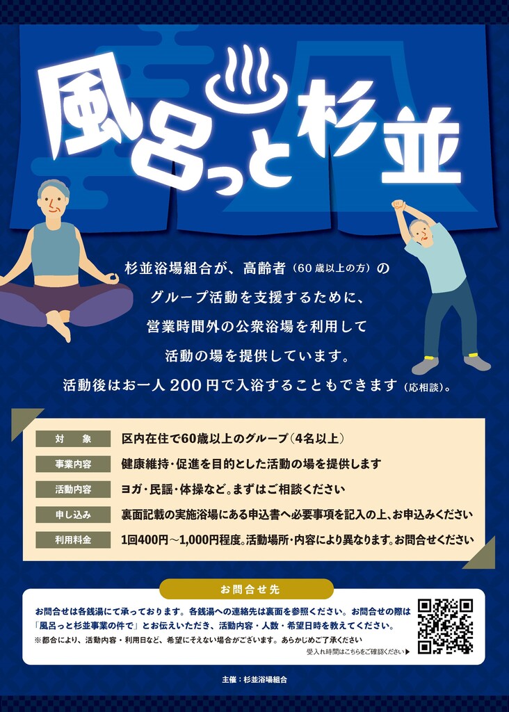 杉並浴場組合が、高齢者(60 歳以上の方)のグループ活動を支援するために、